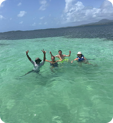Ici, pas de tourisme de masse. Les bateaux accueillent 10 à 12 passagers seulement, pour une ambiance conviviale et chaleureuse. Entre deux baignades, Jordan vous dévoile les secrets des îlets, ponctués d’anecdotes étonnantes qui font sourire et réfléchir.